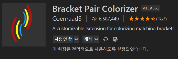 저희는 작업을 할경우 ()괄호를 정말 많이 사용하게 되는데 구분을 위해 필수적으로 설치해주시면 됩니다. 정말 편리한 기능 입니다. [ js 작업을 할 경우 차이를 보실수 있습니다. ]